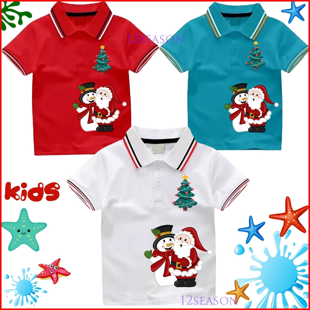 Baju Kaos Polo Natal Anak Laki Laki Edisi Chrismas Wangki Anak Perempuan Tshirt Kaos Kerah 3-10 Th