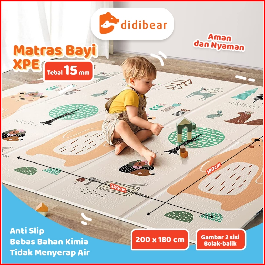 Didibear Baby Playmat Matras Foam Bayi Karpet Tikar Lipat 200x180 Dengan Tas