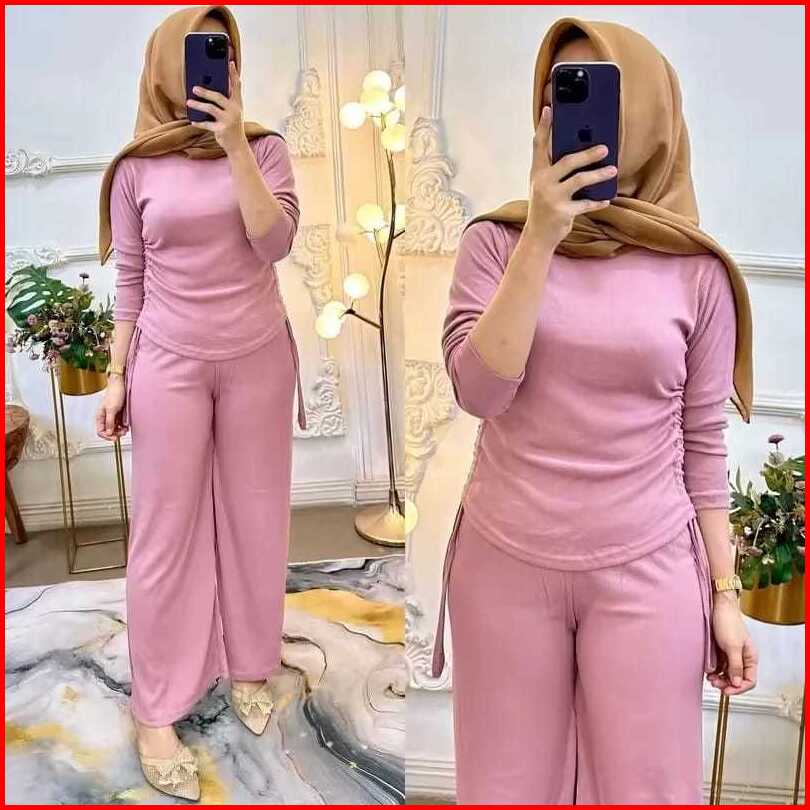 Oneset Nayla Serut Ribb Knit Premium Setelan Serut Samping Kiri Kanan Baju Setelan Wanita Bahan Rib Knit Ribb Premium On