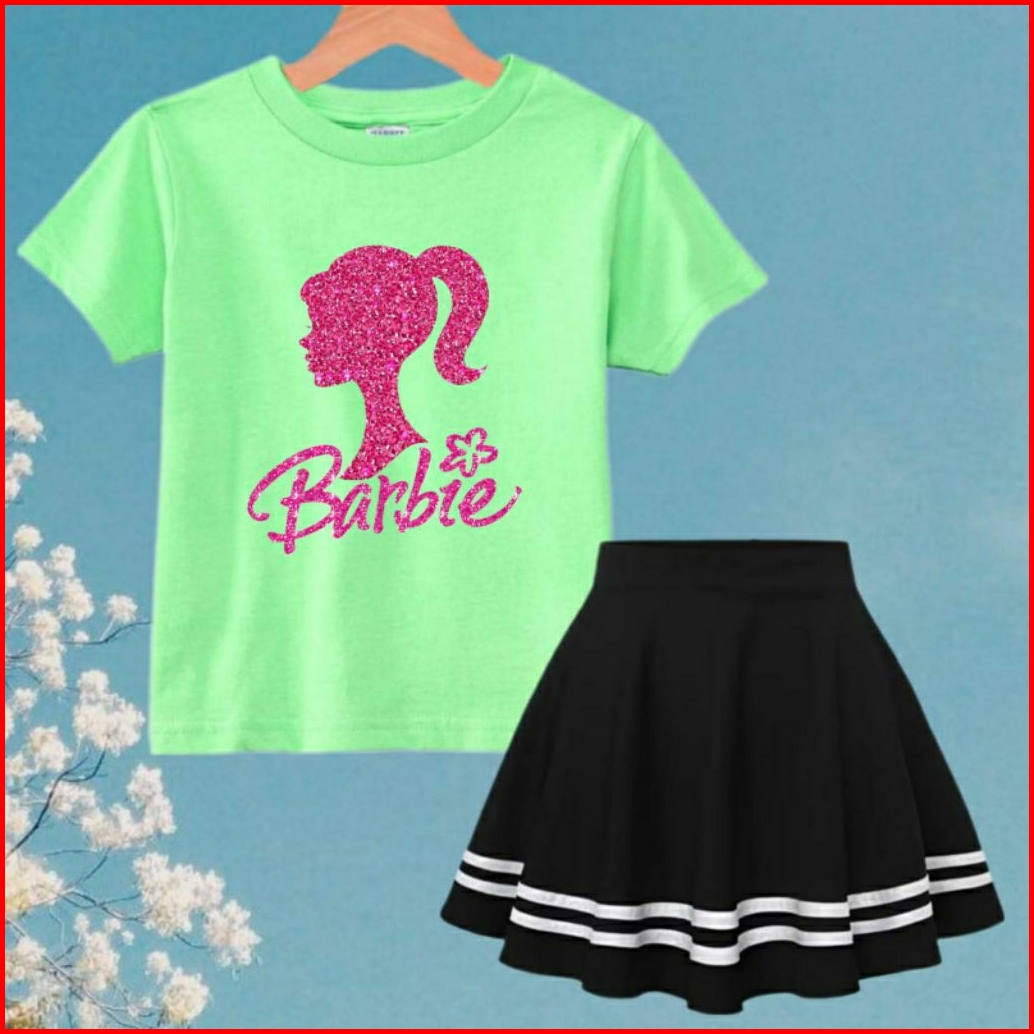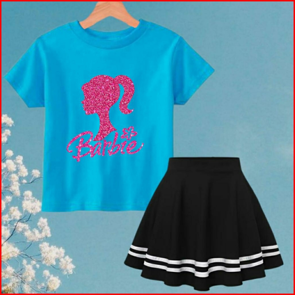 Stelan Rok Anak Perempuan.gambar Barbie.untuk Anak Usia 1 Tahun-9 Tahun