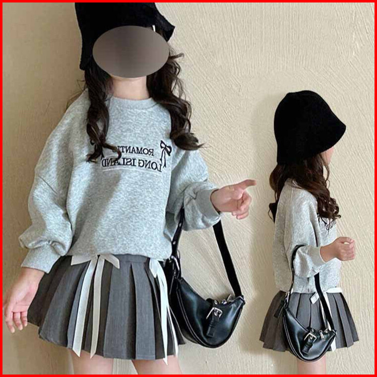 5071056 - Setelan Baju Sweater Bawahan Rok Pendek Fashion Anak Perempuan - Motif Letter Ribbon