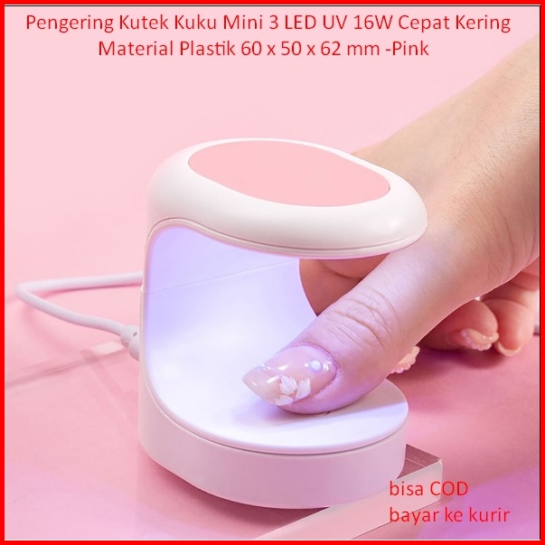 Pengering Kutek Kuku Mini 3 Led Uv 16w Cepat Kering Material Plastik 60 X 50 X 62 Mm -pink