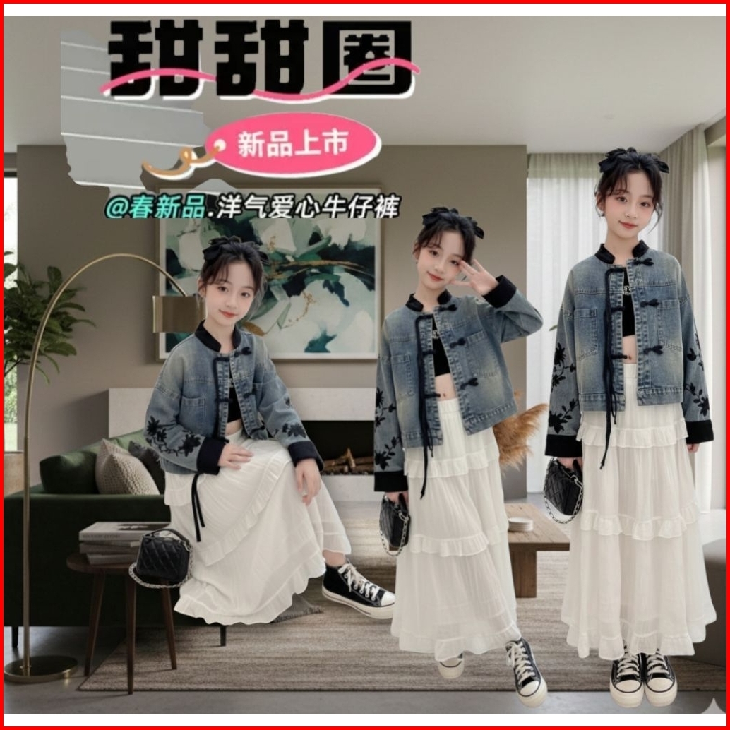 Ks02 Setelan Rok Atasan Jeans Size 120-170