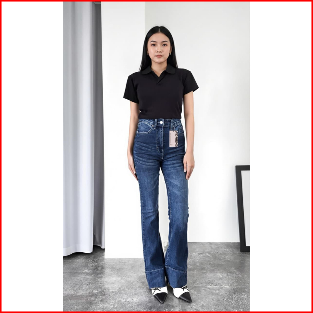 Nf - Jennie Jeans - Highwaist Cutbray Jeans Retro Lipat Lebar - Flare Jeans Retro Vintage Panjang