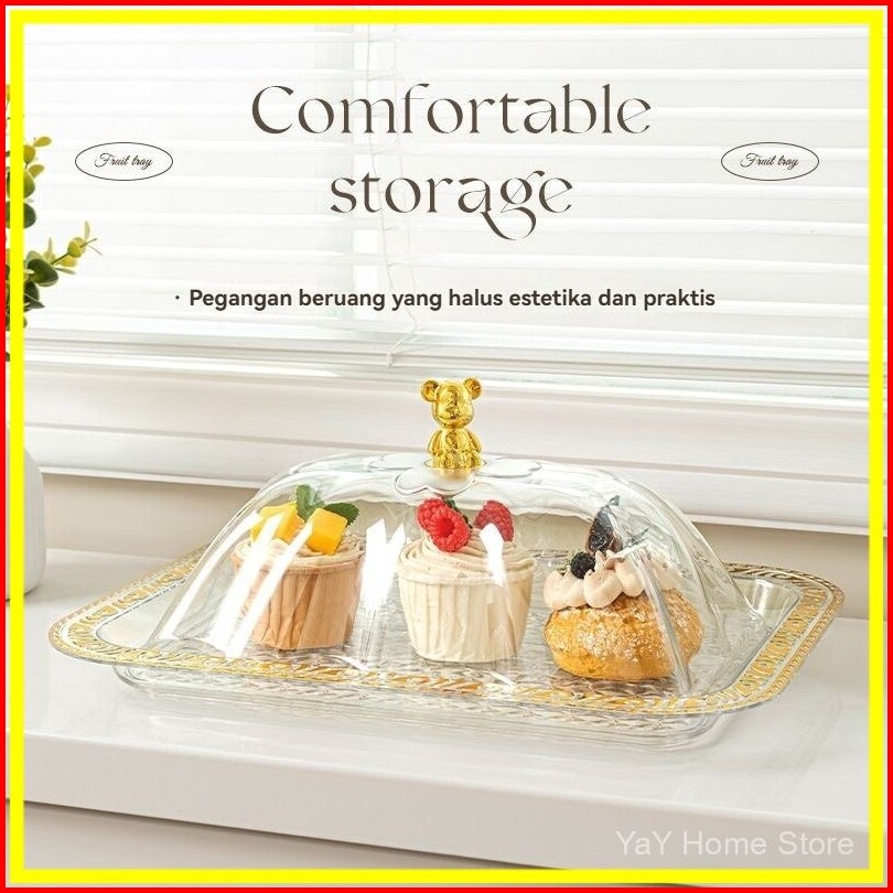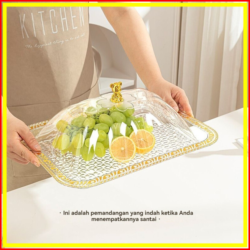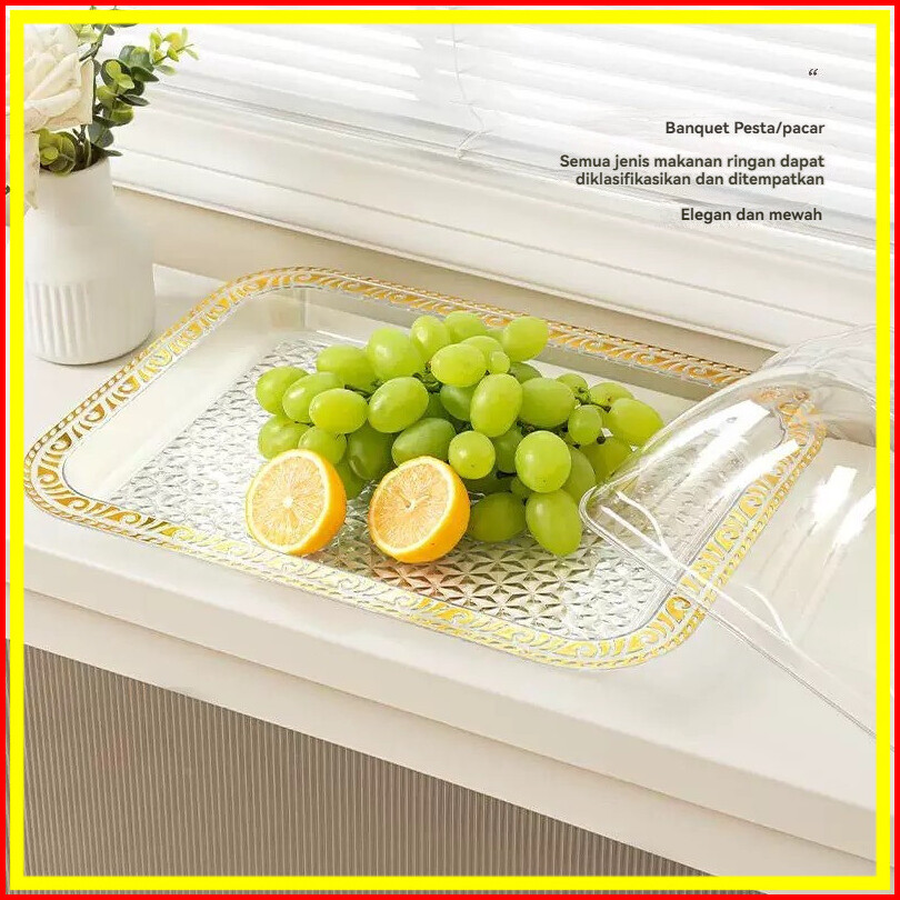 Nampan Tray Food Tray Transparan Aesthetic Dengan Tutup Wadah Makanan Dekorasi Nampan Tray Mewah Nampan Dengan Pegangan