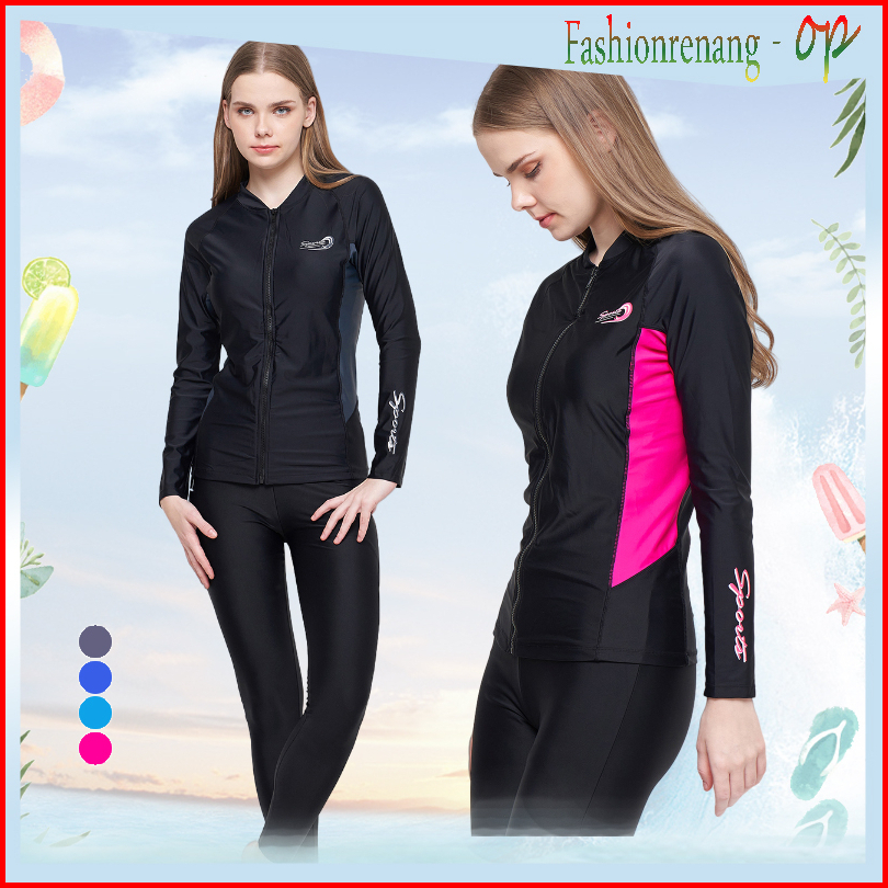31605 Baju Renang Wanita Dua Piece Fashion Dewasa Baju Renang Lengan Panjang Pakaian Selam