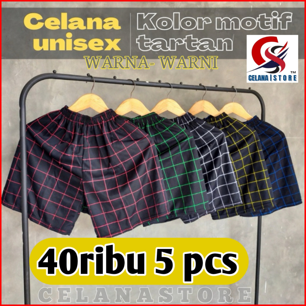 Promo 40ribu 5 Pcs Celana Kolor Pendek Tartan Pria Wanita Motif Kotak Kotak