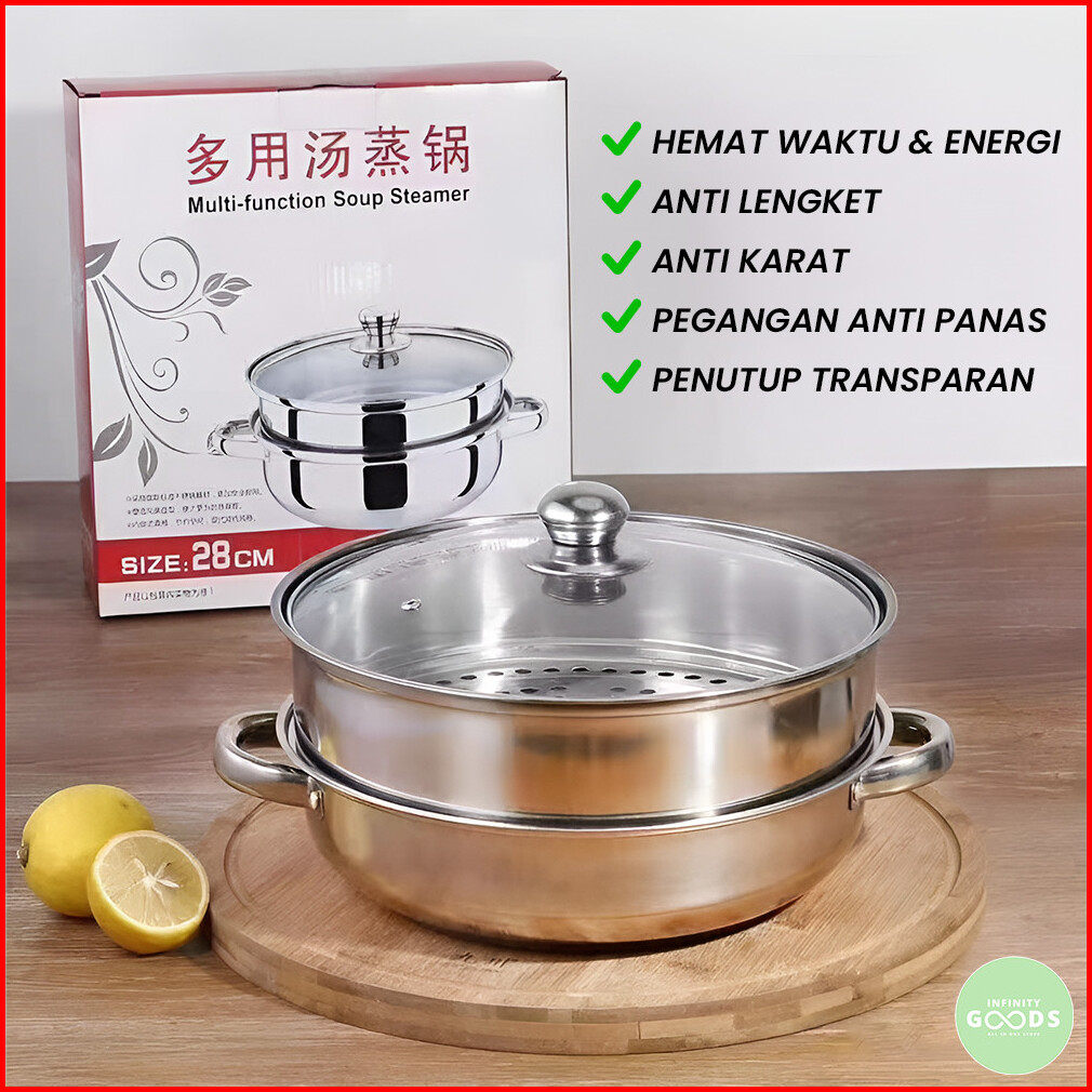 Inf Panci Steamer 2 Tingkat Stainless Steel 28cm Kukus Dan Rebus