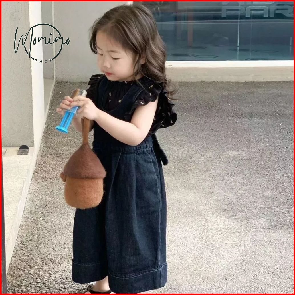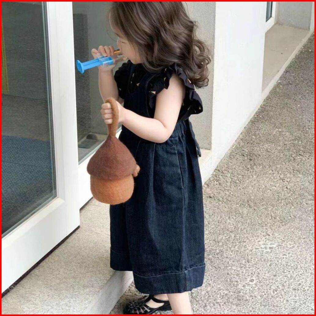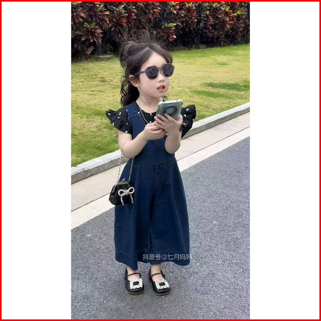 Setelan Overall Anak Perempuan One Set Atasan Lengan Pendek Atasan Manis Celana Jeans Kulot