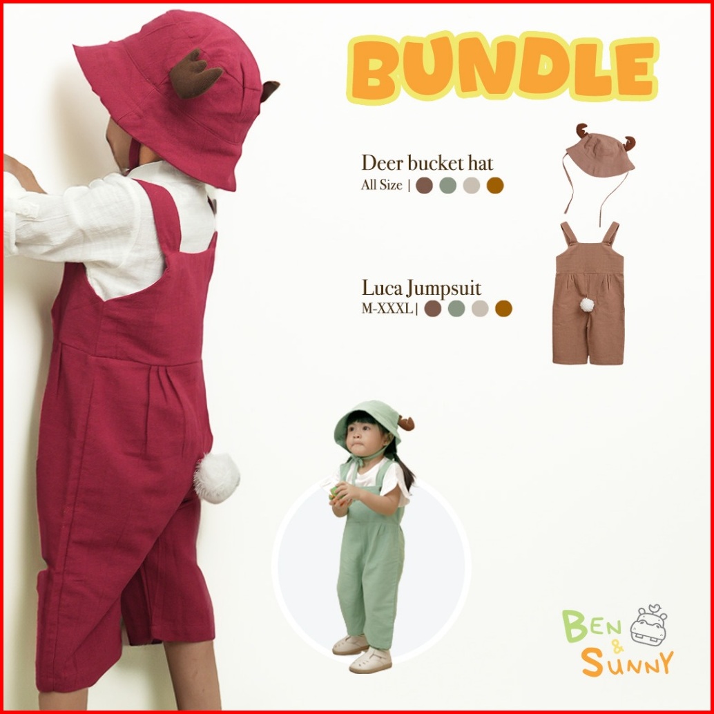 Ben N Sunny Bundle - Baju Setelan Luca Jumpsuit Deer Rusa Bucket Hat Anak 1 - 6 Tahun Laki-laki Perempuan Cotton Katun L