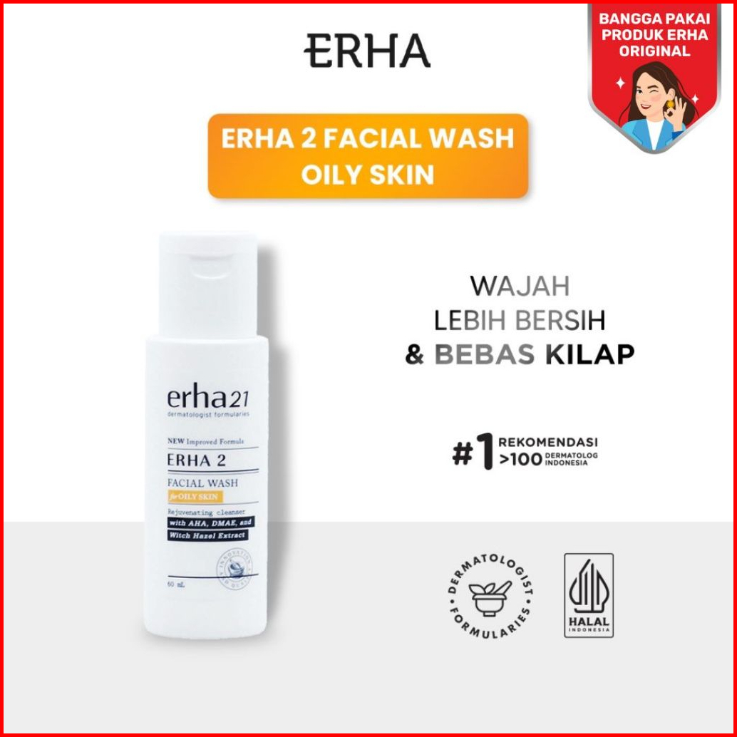Erha 2 Facial Wash For Oily Skin 60 Ml - Sabun Wajah Kulit Berminyak