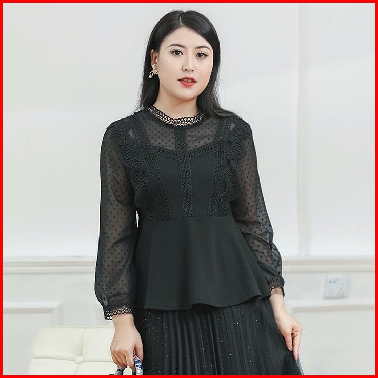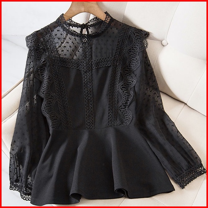 New Longgar Dan Kasual Kemeja Variasi Burkat Ruffle Blouse Import