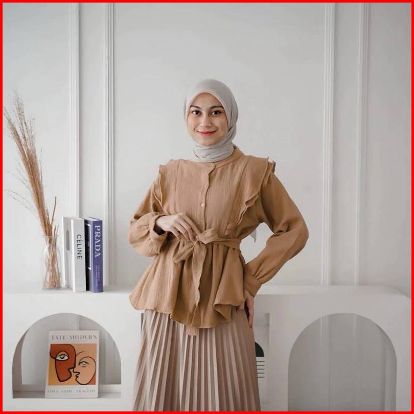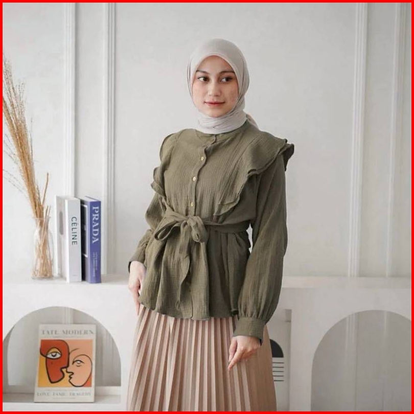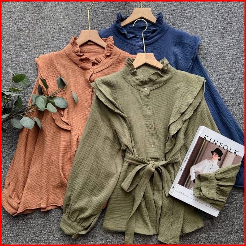 Promo Murah Kemeja Oversize Blouse Wanita Ruffle Ladycrush Premium