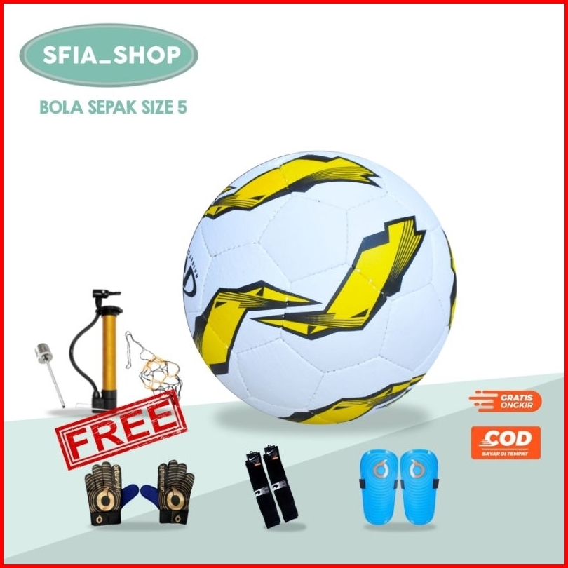 Bola Sepak Size 5 Bliter Bola Kaki Bahan Aselak Dijahit Tangan Manual Bonus Pompa Pentil Dan Jaring
