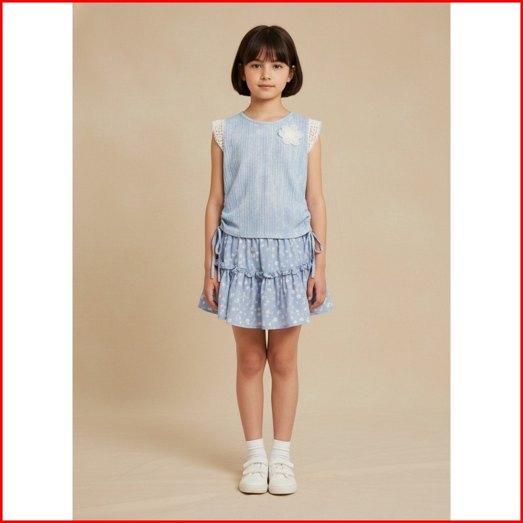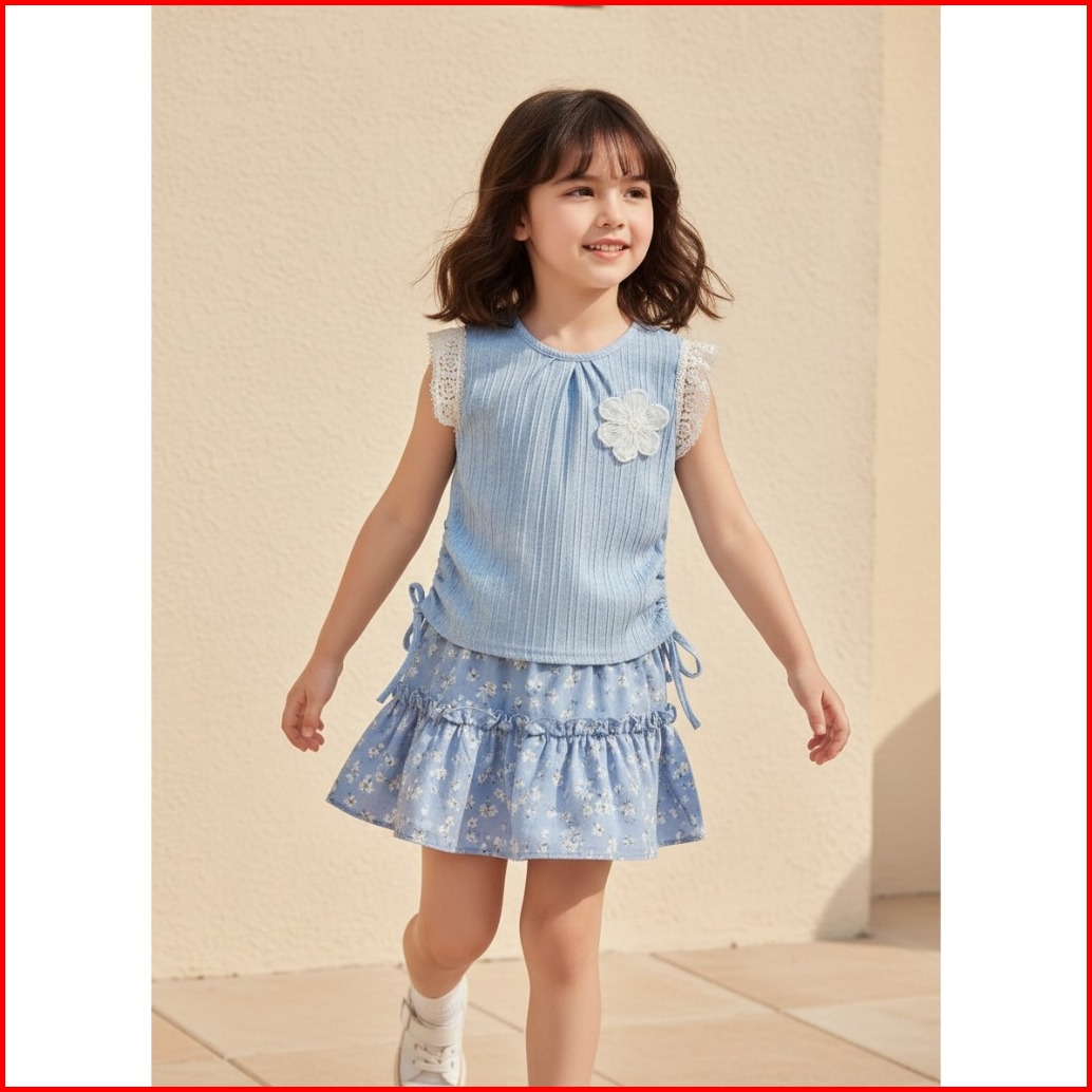 Setelan Anak Perempuan Model Crop Rok Serut Dengan Motif Bunga Usia 6 Bulan Sampai 6 Tahun Viral Cocok Buat Lebaran