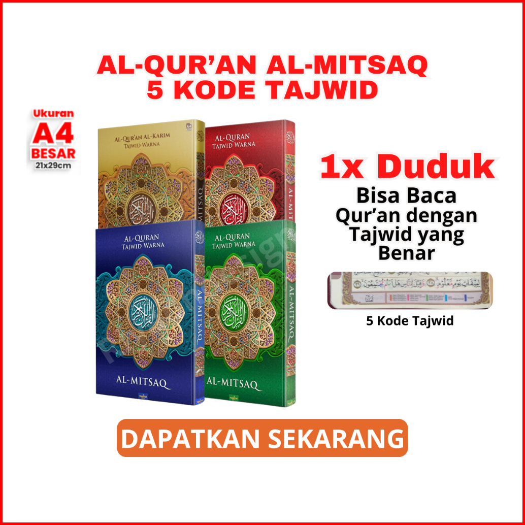 Alqur An Al-mitsaq A4 Hard Cover Mushaf Non Terjemah Tajwid Warna Tulisan Besar Untuk Orang Tua Lansia