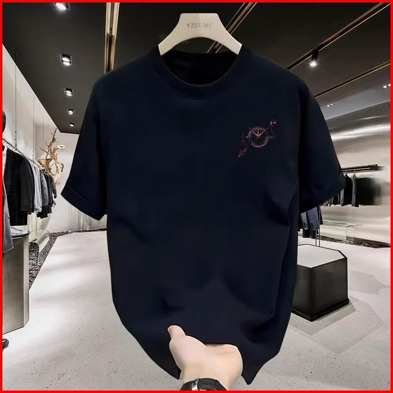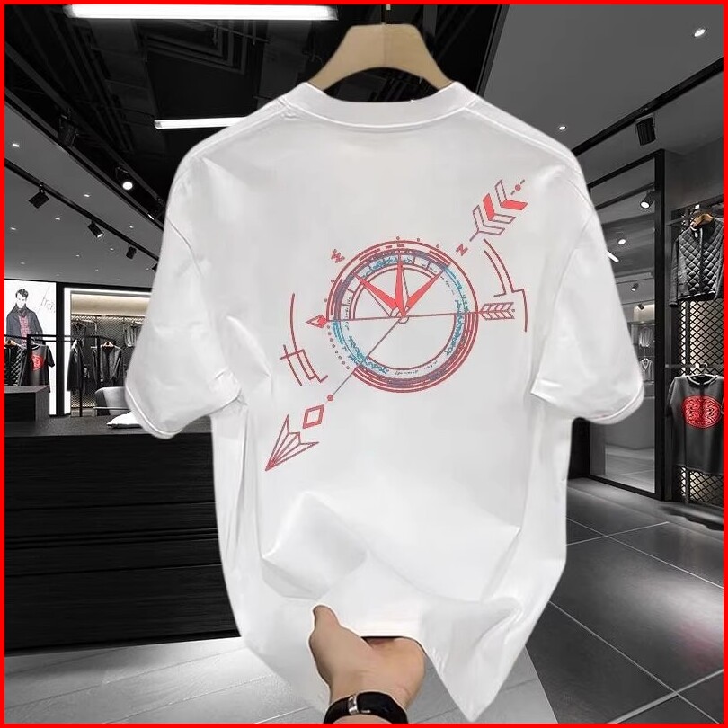 Kaos Pendek Katun Kasual Pria Dengan Cetak Pola Kompas Trendy