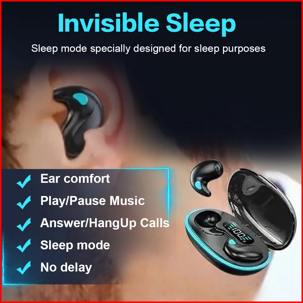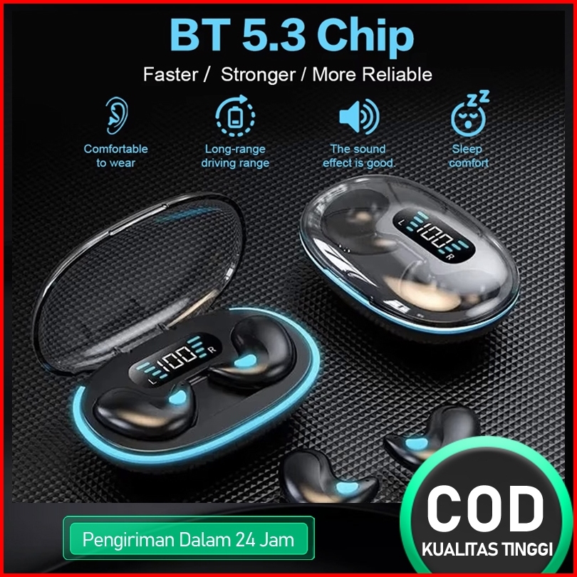 Codx55 Headphone Bluetooth Earphone Earbud Nirkabel Tak Terlihat Dengan Layar Led Headset Tidur Pengurang Kebisingan Kai
