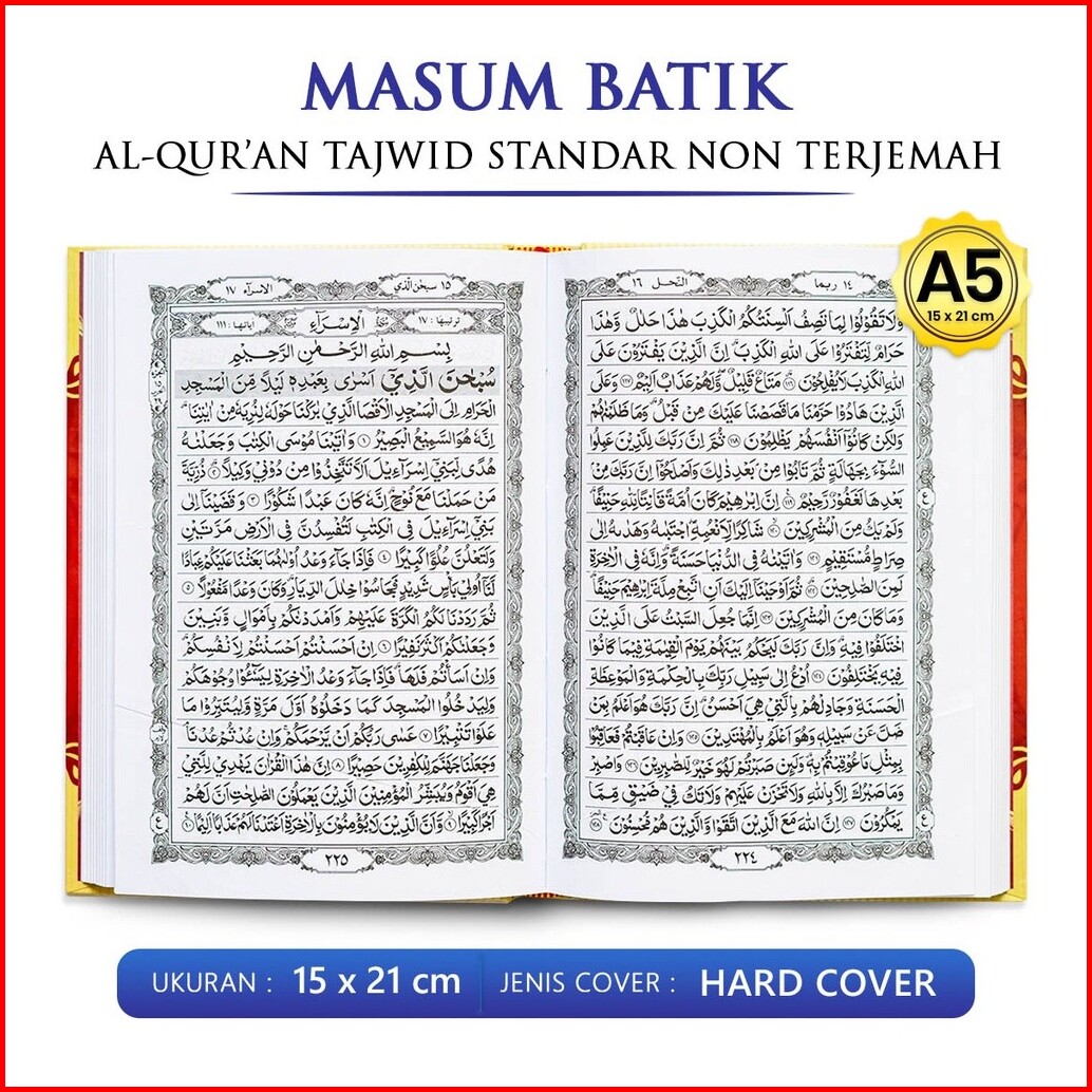 Alquran Kecil A5 15 X21 Cm Masum Batik Al Quran Tajwid Non Terjemah Wakaf Quran Kertas Hvs Lingkar Media Lm - Lm