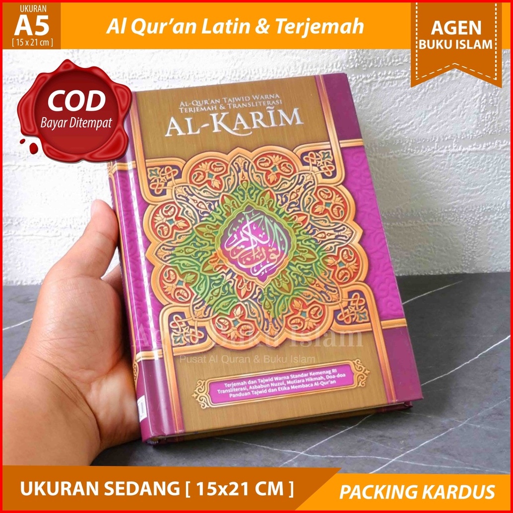 Al Quran Terjemah Tajwid Warna Al Karim A5 15x20cm Al Quran Latin Sedang - 100 Original