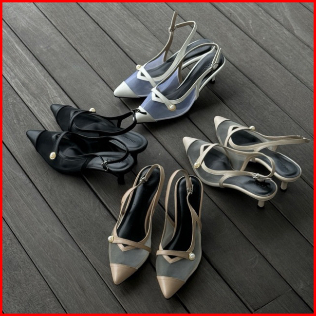Solane - Meggan Mesh Mules Heels Pesta Heels Wanita Kitten Heels Sepatu Hak Tertutup