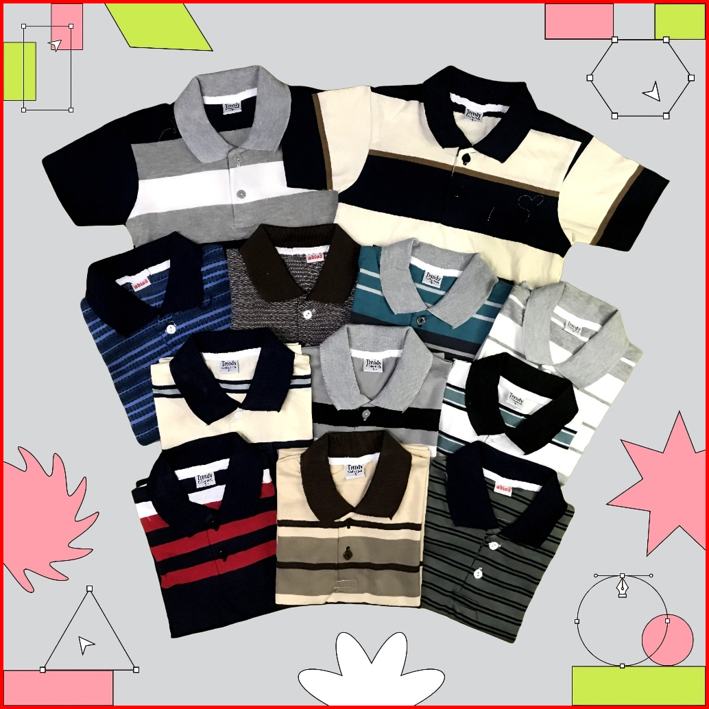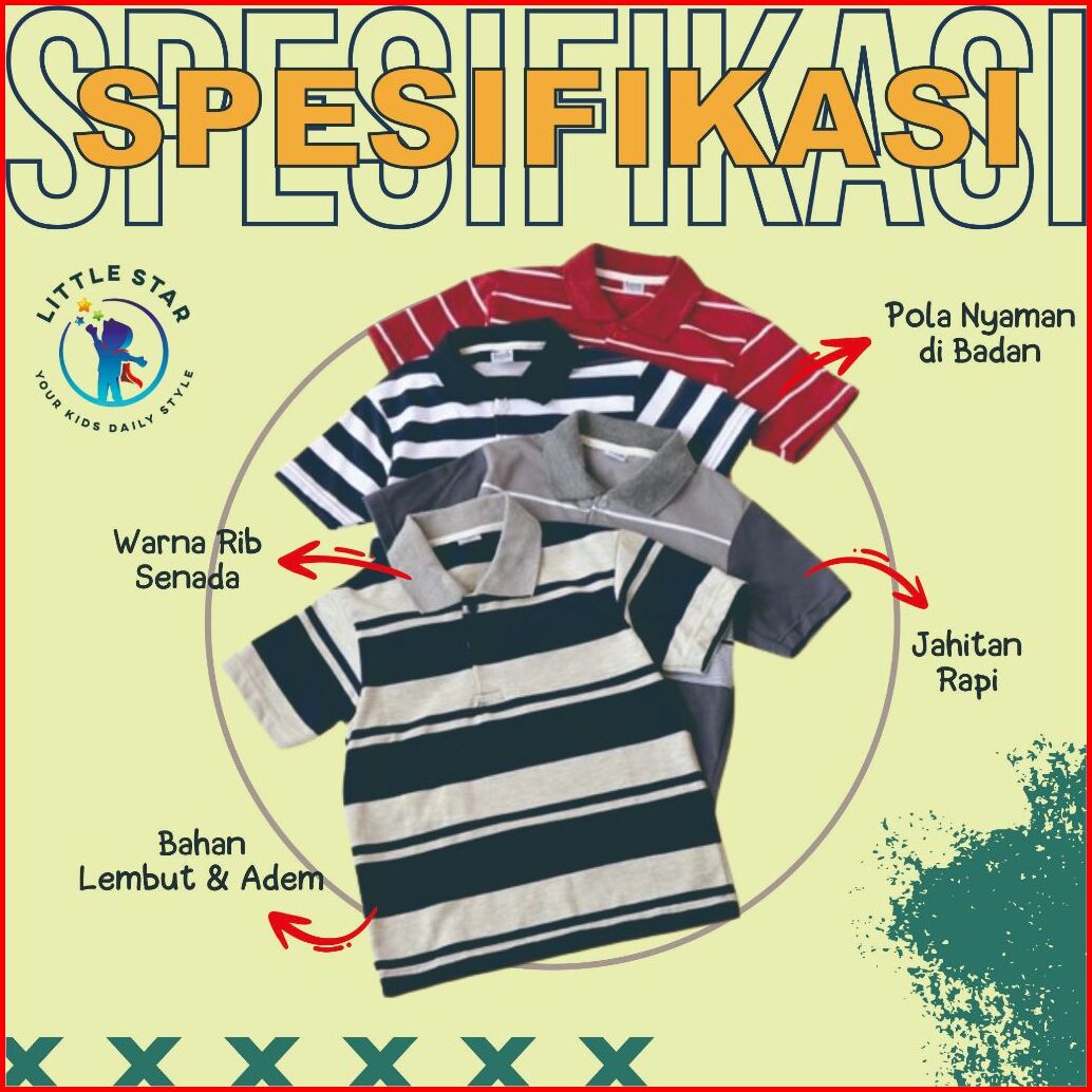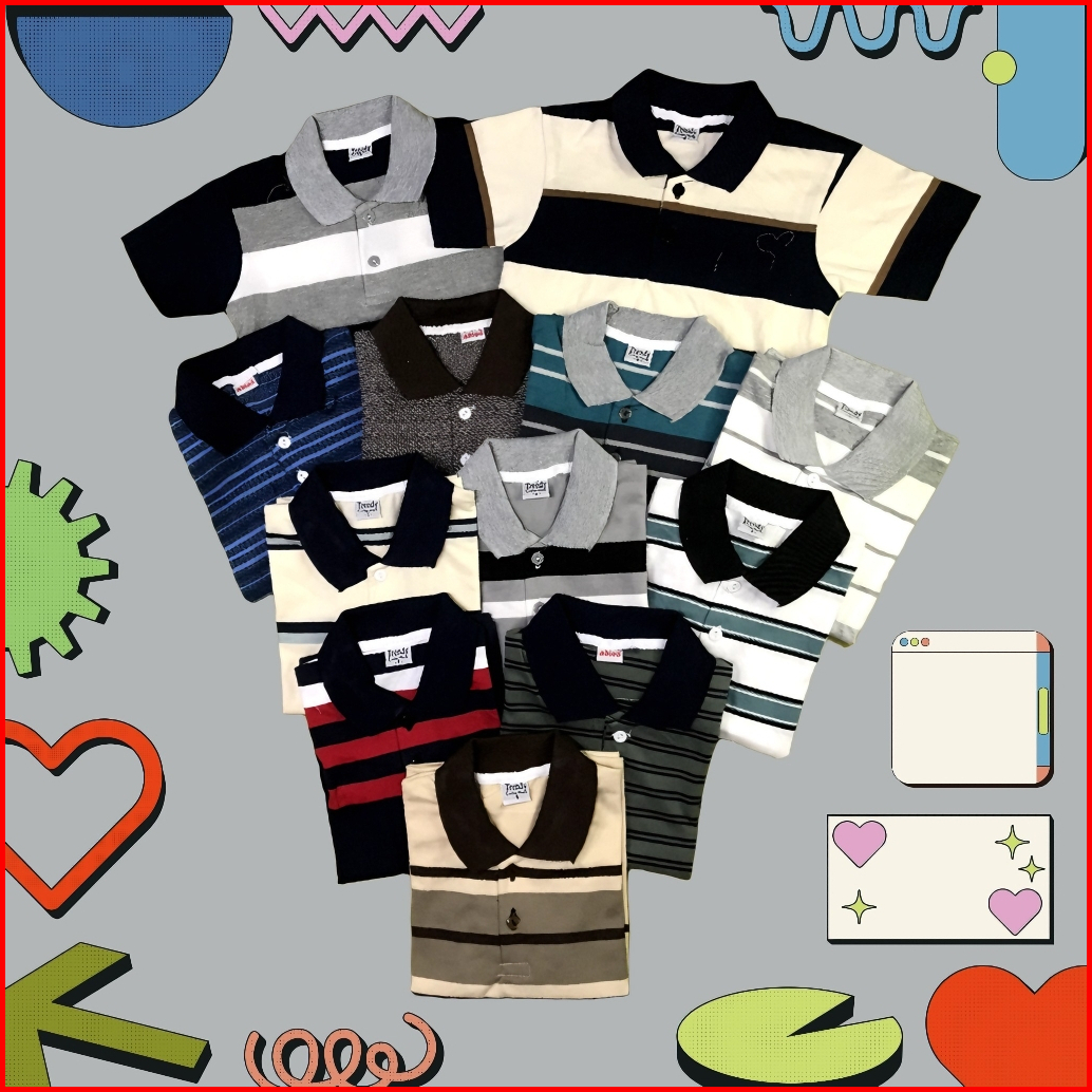 Paket 6 12 Baju Kaos Kerah Wangky Anak Laki Laki Perempuan Usia 1-8 Tahun Motif Salur Striped Garis