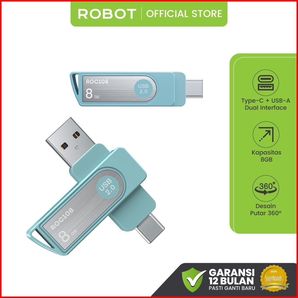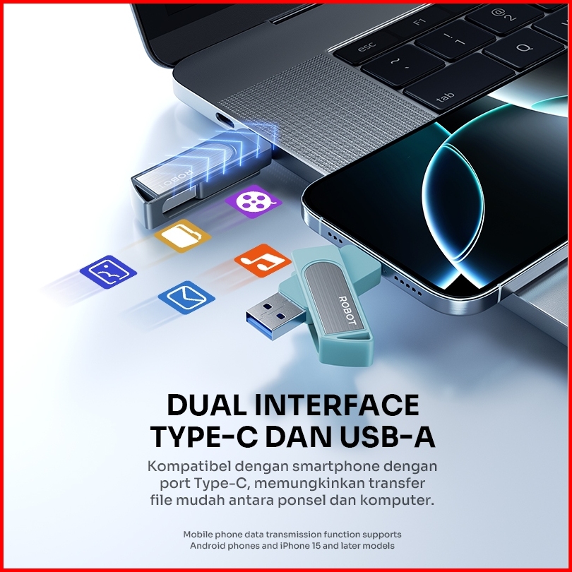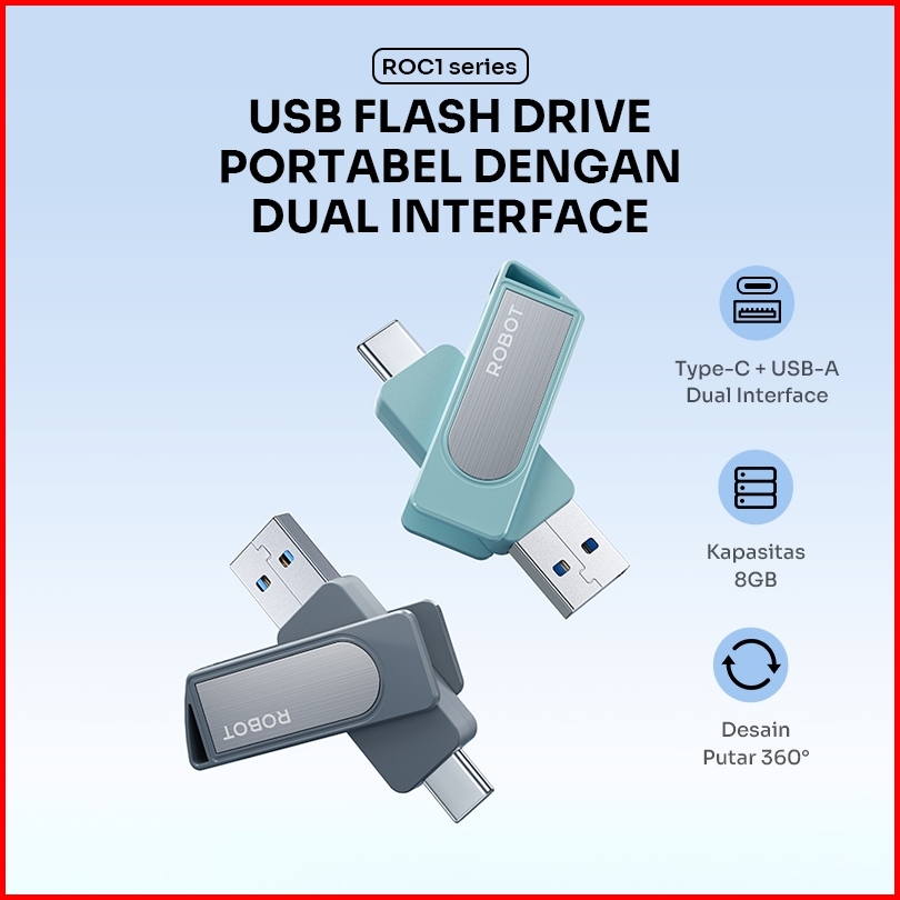 Robot U-disk Flashdisk Kapasitas 64gb Type-c High Speed Penyimpanan Iphone Android Komputer Flash Drive Logam Usb Roc108
