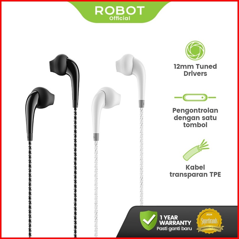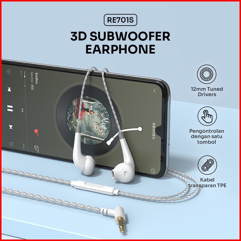 Robot Wired Headset Sport Gaming Subwoofer Powerfull Bass With Driver 12mm Earphone Re701s Original - Garansi 1 Tahun