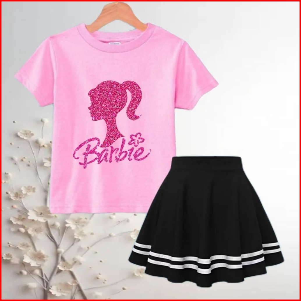 Stelan Rok Anak Perempuan.gambar Barbie.untuk Anak Usia 1 Tahun-9 Tahun