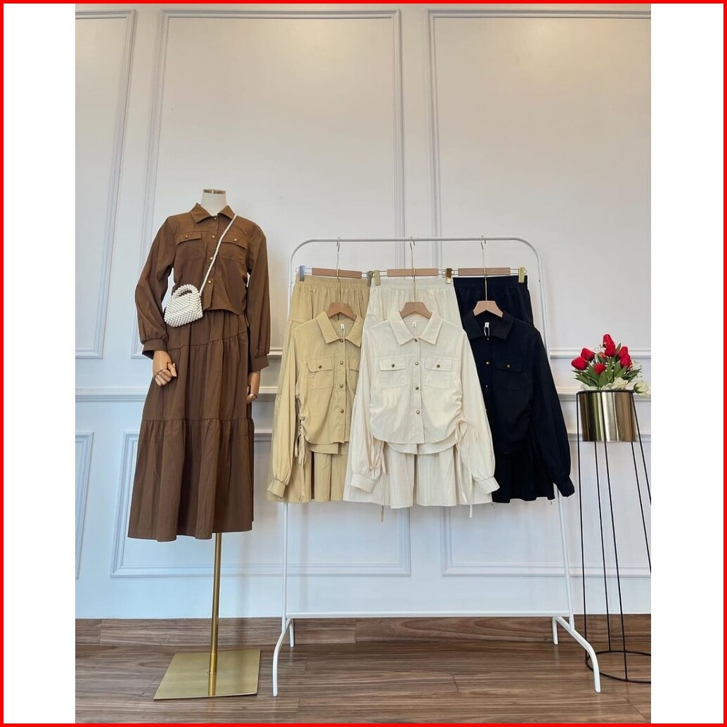 Vallina Outfit - Belaria One Set Rok 2in1 Setelan Modern Kekinian Cringkle Airflow Ootd Korean Style