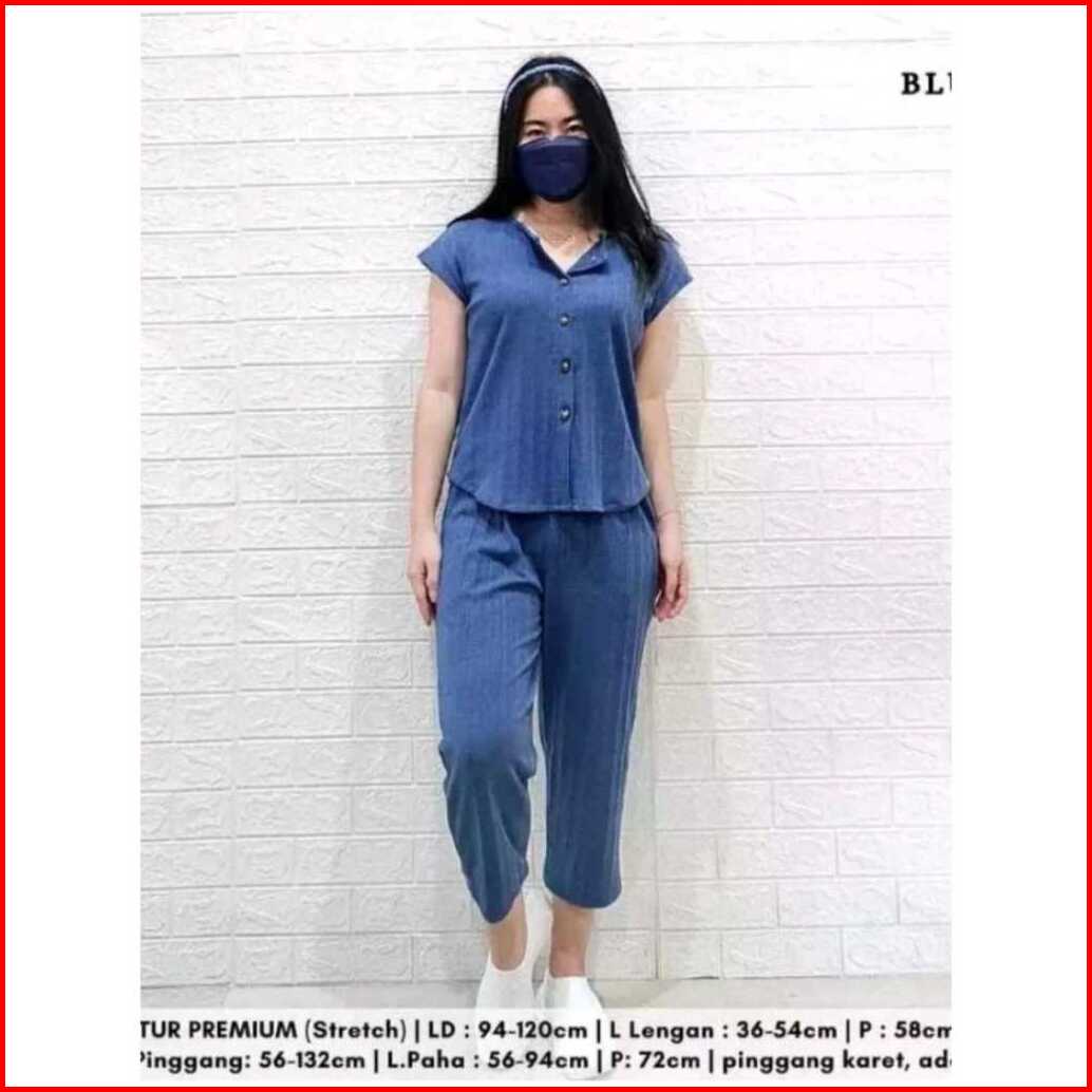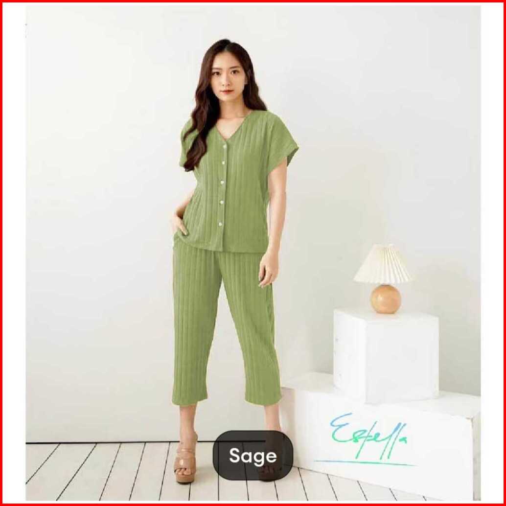 Setelan Wanita Estela Bahan Knit Hornet Premium One Set Kekinian Jumbo Xxl Terbaru