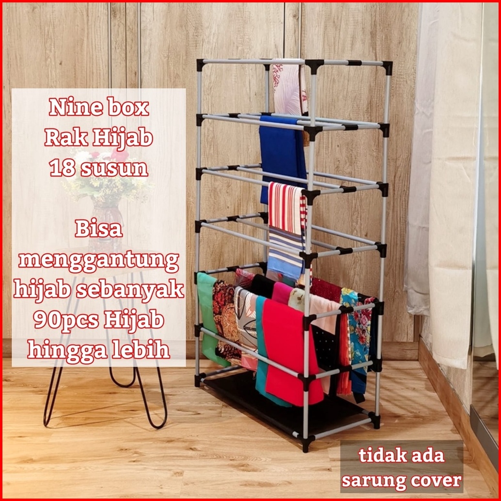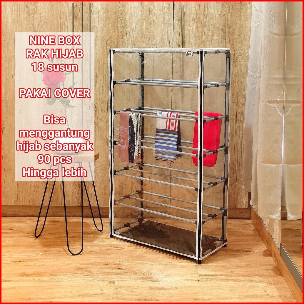 Nine Box Rak Hijab Jilbab Anak 18 Susun Dengan Cover Plastik Anti Debu Rak Gantung Hijab Jilbab Anak