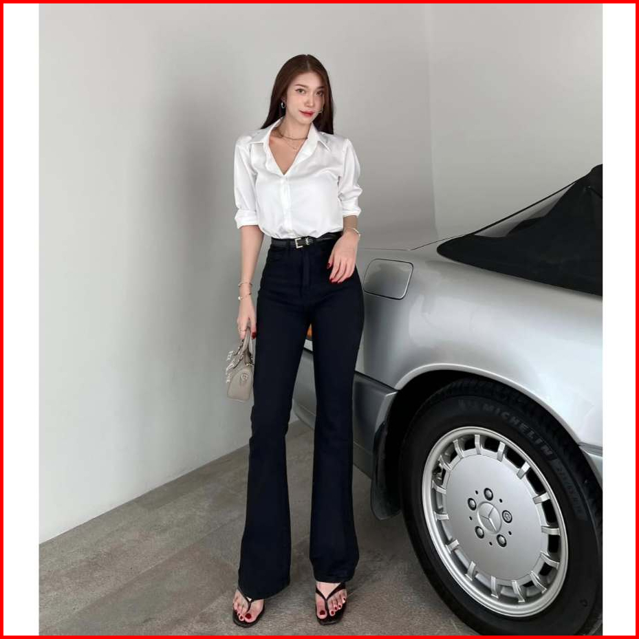 Luxystore - High Waist Cutbray Jeans Wanita Premium Stretch