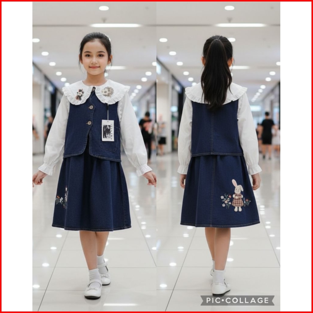 Diansister Setelan 3 In 1 Rok Jeans Selutut Premium 140 150 160 170