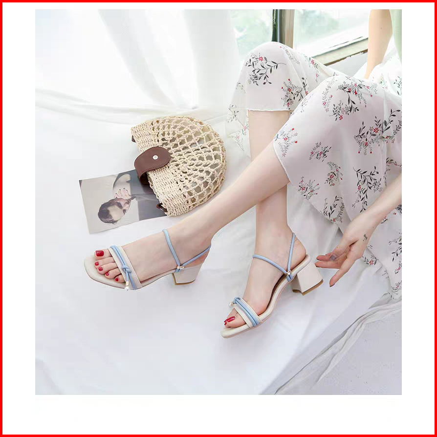 Sandal Heels Wanita Hak Tahu 5cm Variasi Tali Mutiara