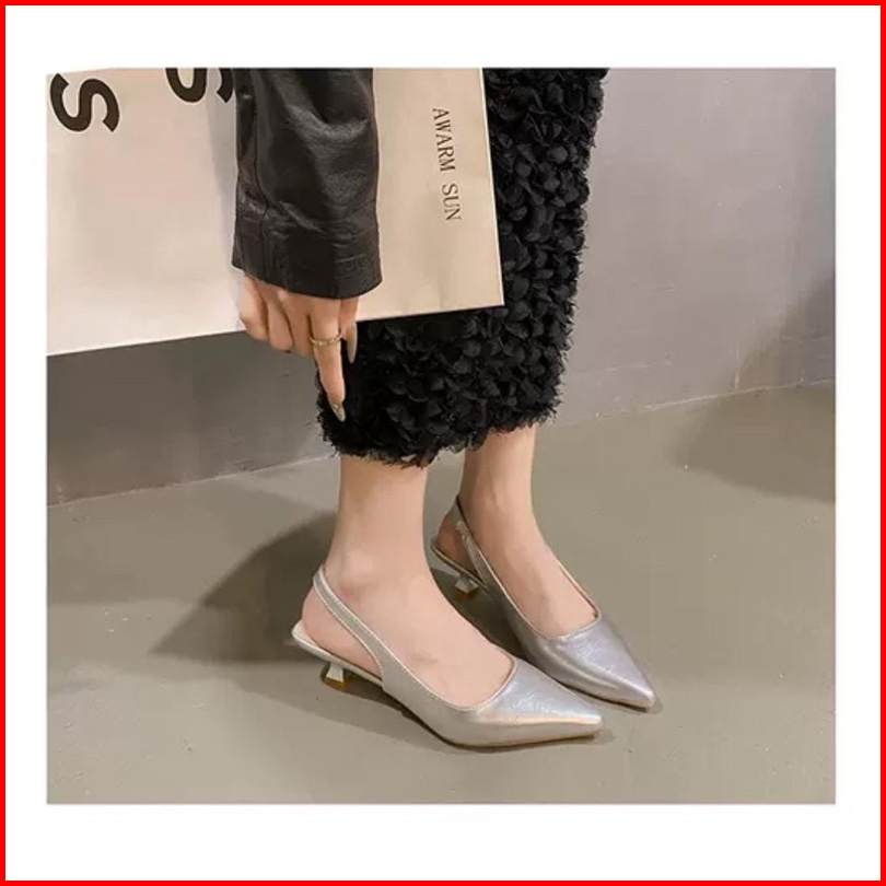 1718 Loei Heels Mport Tali Belakang Sandal Hak Tinggi Wanita