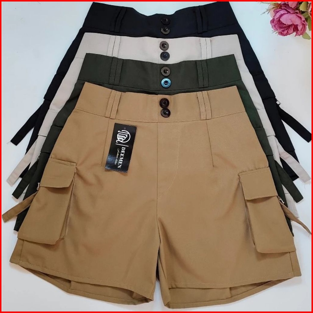 Celana Pendek Wanita Korea Style Hightwaist Hotpants Cargo Kekinian