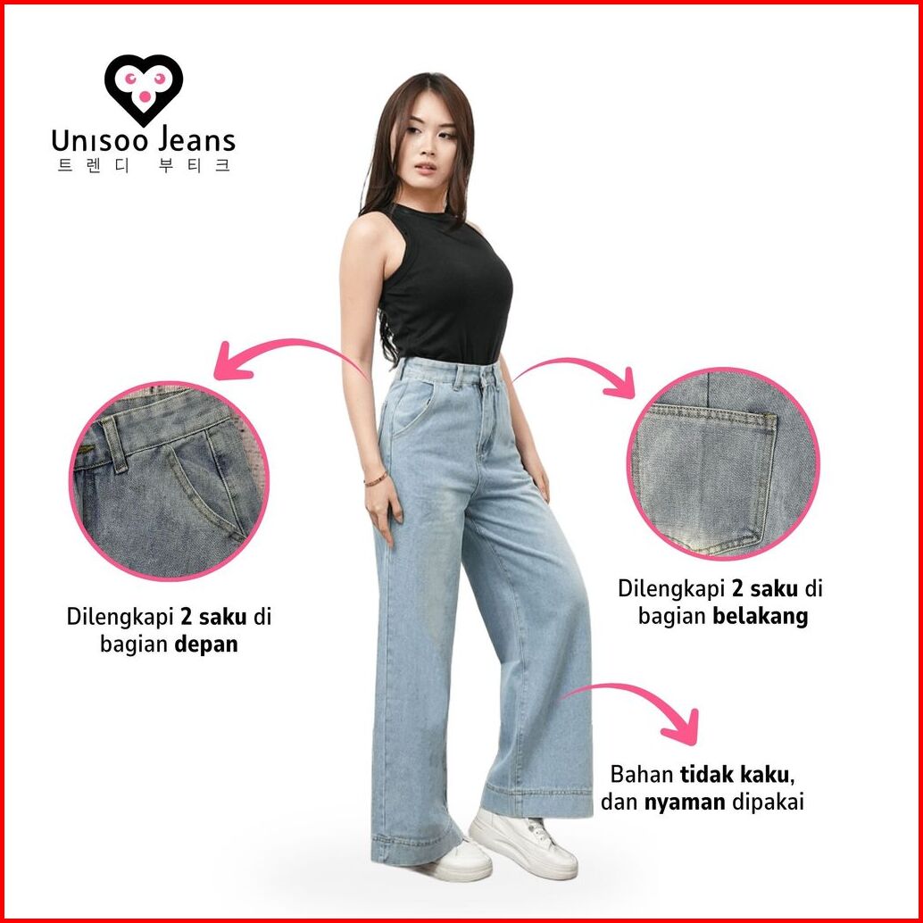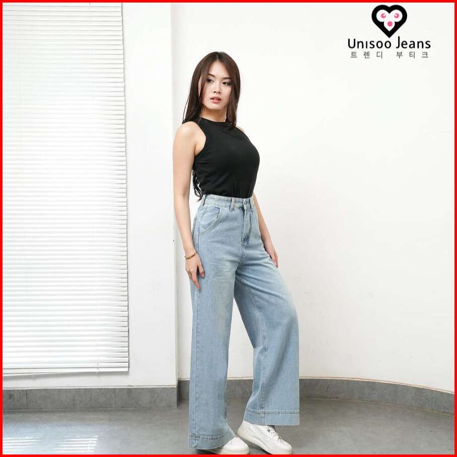 Unisoo Jeans - Ck8007 Celana Jeans Highwaist Celana Jeans Kulot Jeans Wanita Highwaist Loose Jeans Wide Leg Jeans