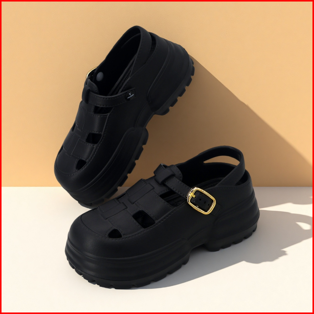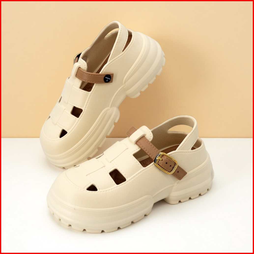 Takidtoo Sepatu Sandal Wanita Wedges Korean Style Buckle Strap Cantik Anti Slip Empuk