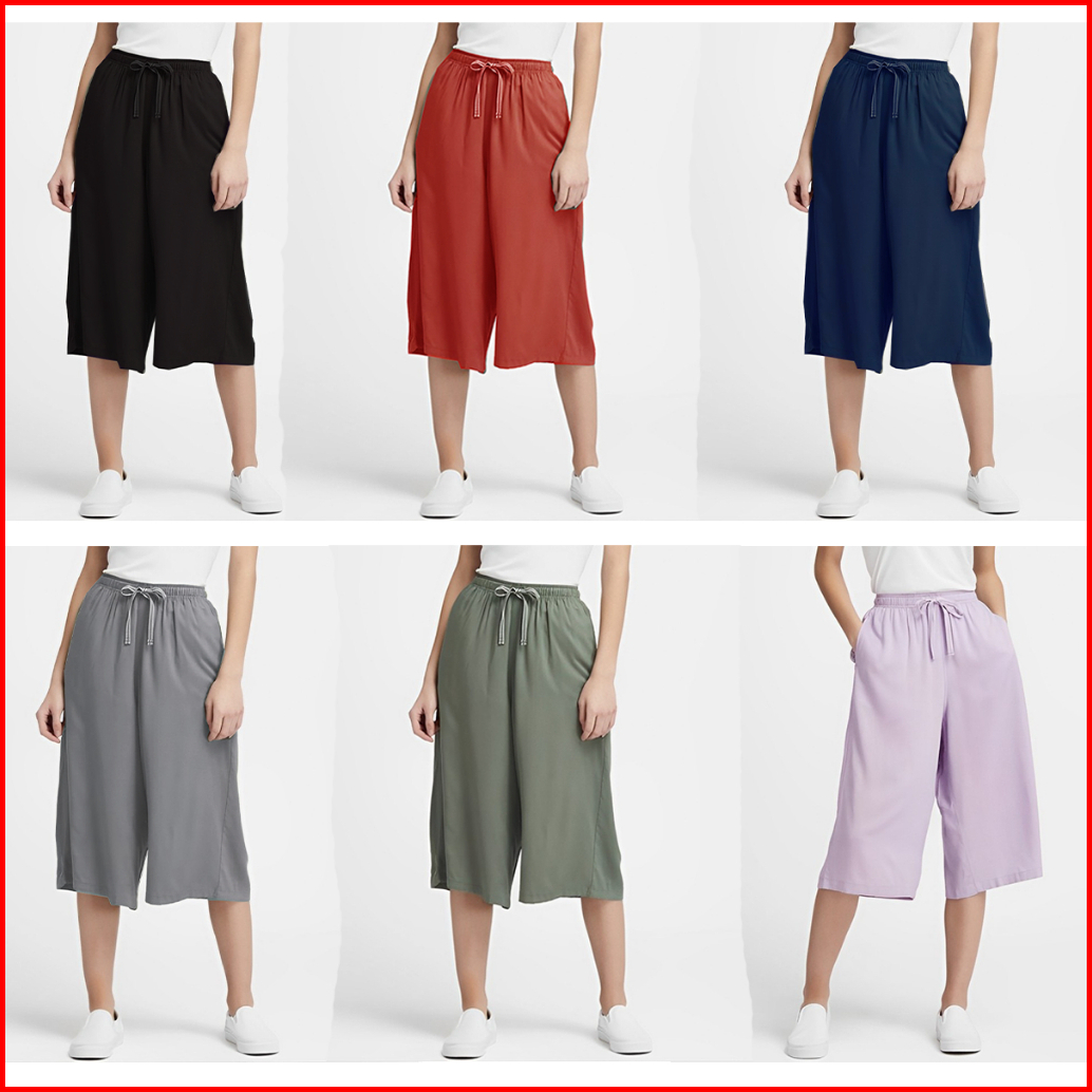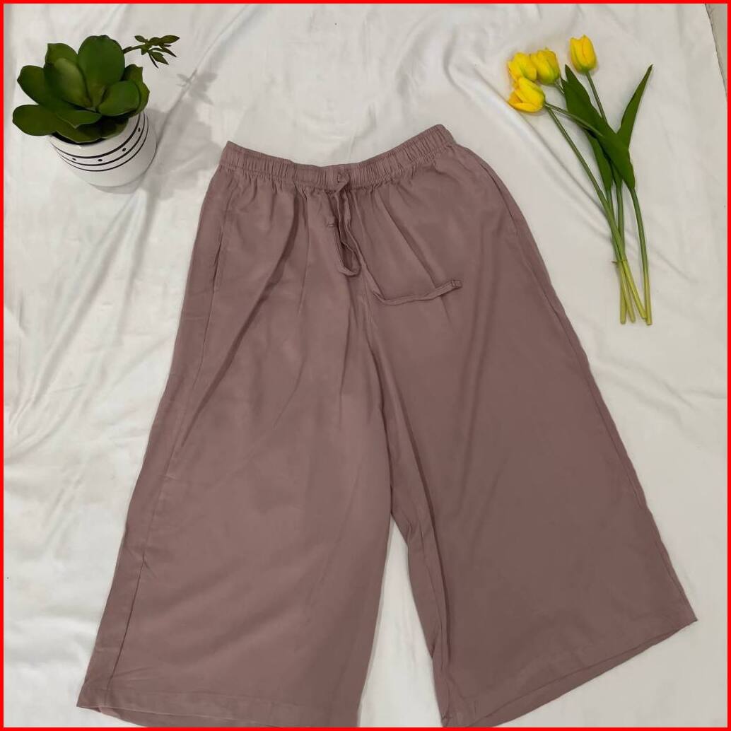 Celana Kulot Pendek Wanita Polos Celana Pendek 7 8 Katun Stretch