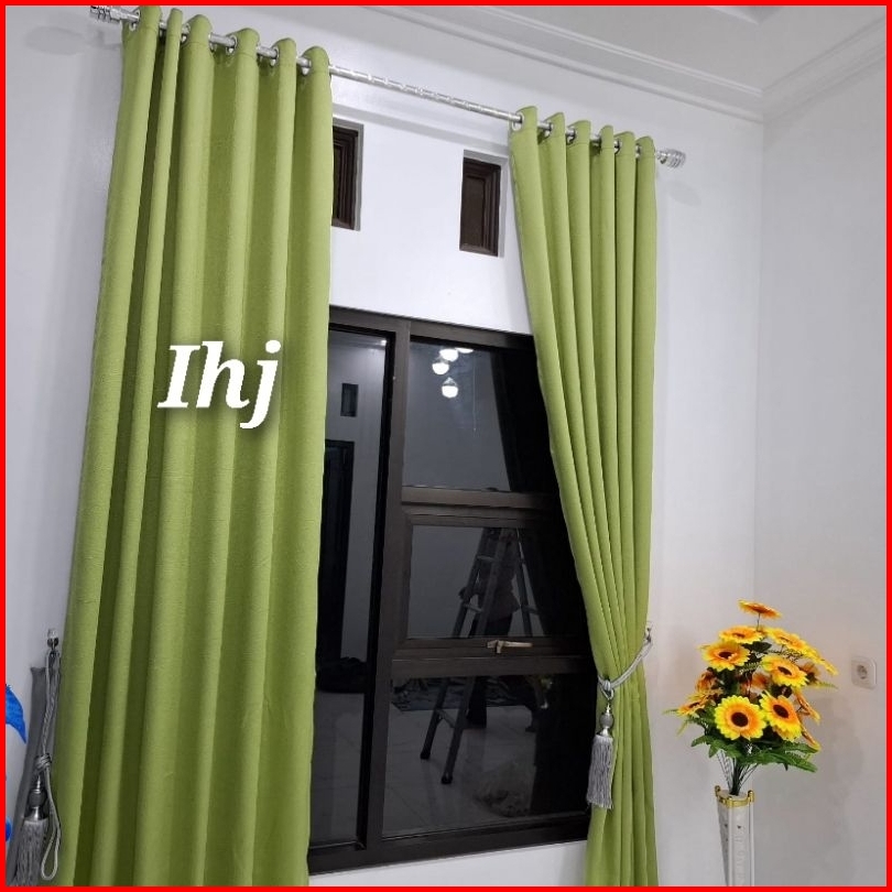 Gorden Jendela Pintu Blackout Impor Premium 12 Ring 6 Gelombang Panjang Pendek Warna Coklat Tirai