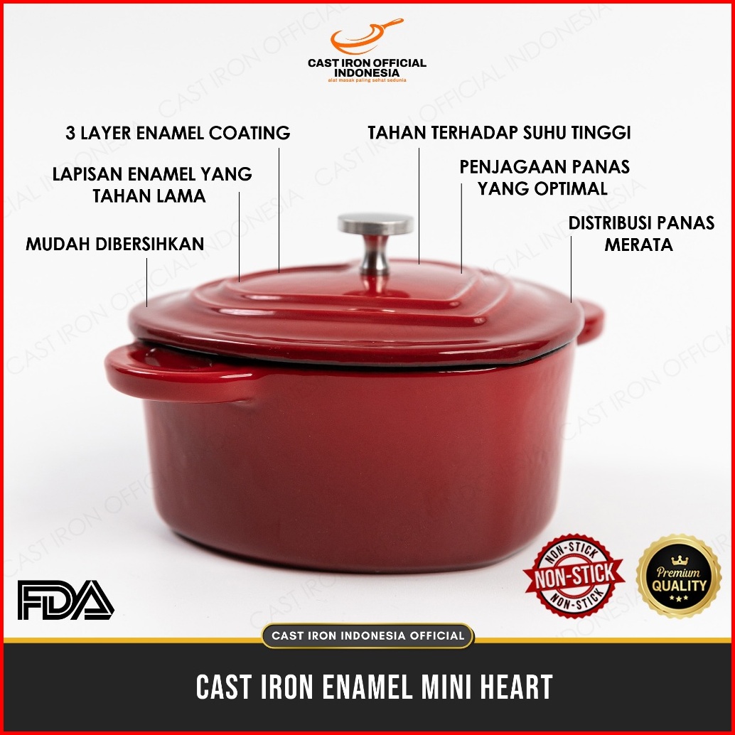 Cast Iron Enamel 12 Cm Heart Shape Food Grade Mpasi Sourdough Slow Cook Unique Rare
