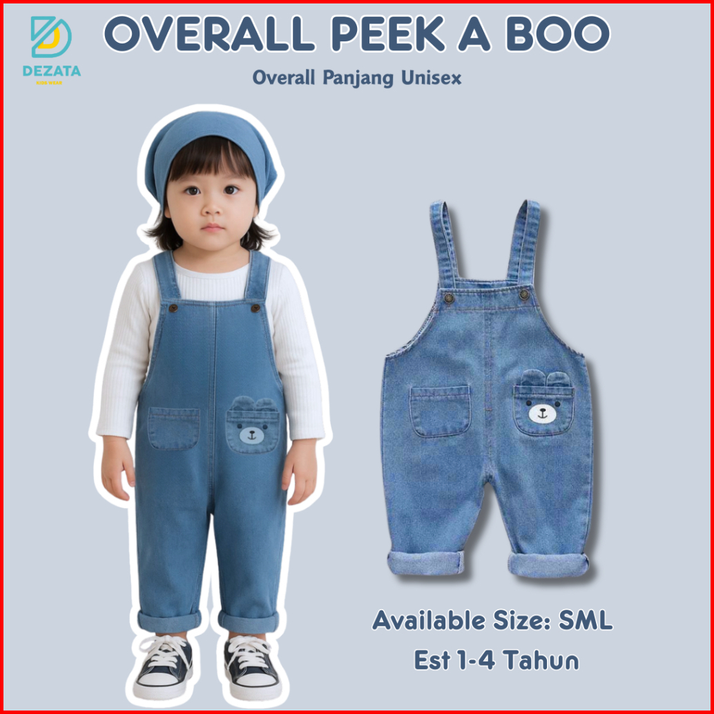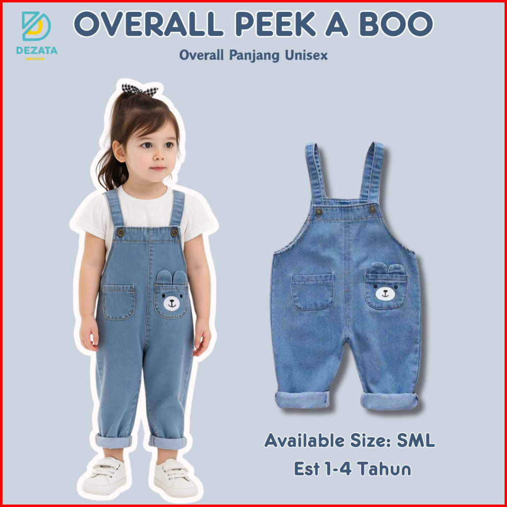 Overall Peek A Boo - Overall Jeans Anak 2-5 Tahun Jumpsuit Panjang Anak Baju Kodok Anak Overall Anak