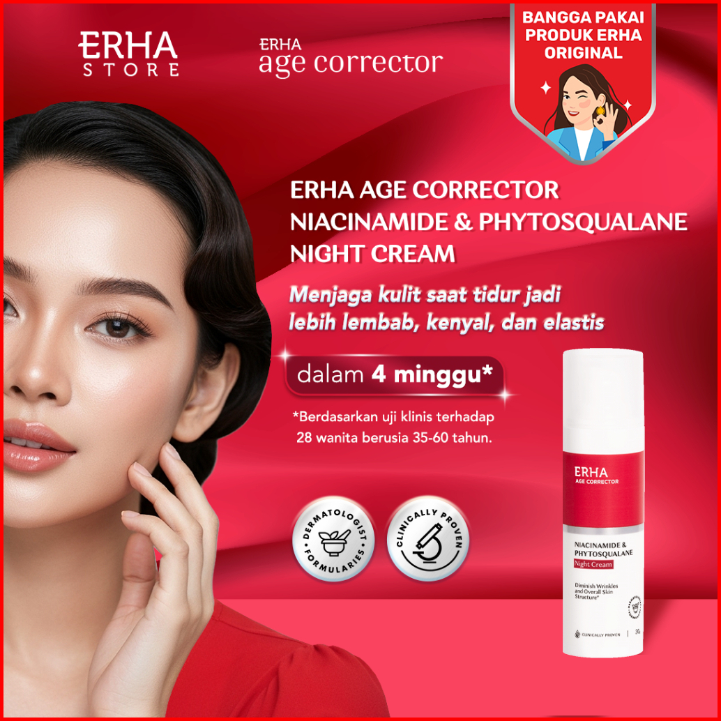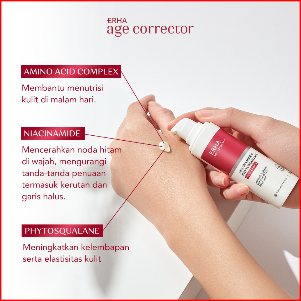 Erha Age Corrector Niacinamide Phytosqualane Night Cream 30g - Krim Malam Anti Aging Melembabkan Meremajakan Kulit Merat