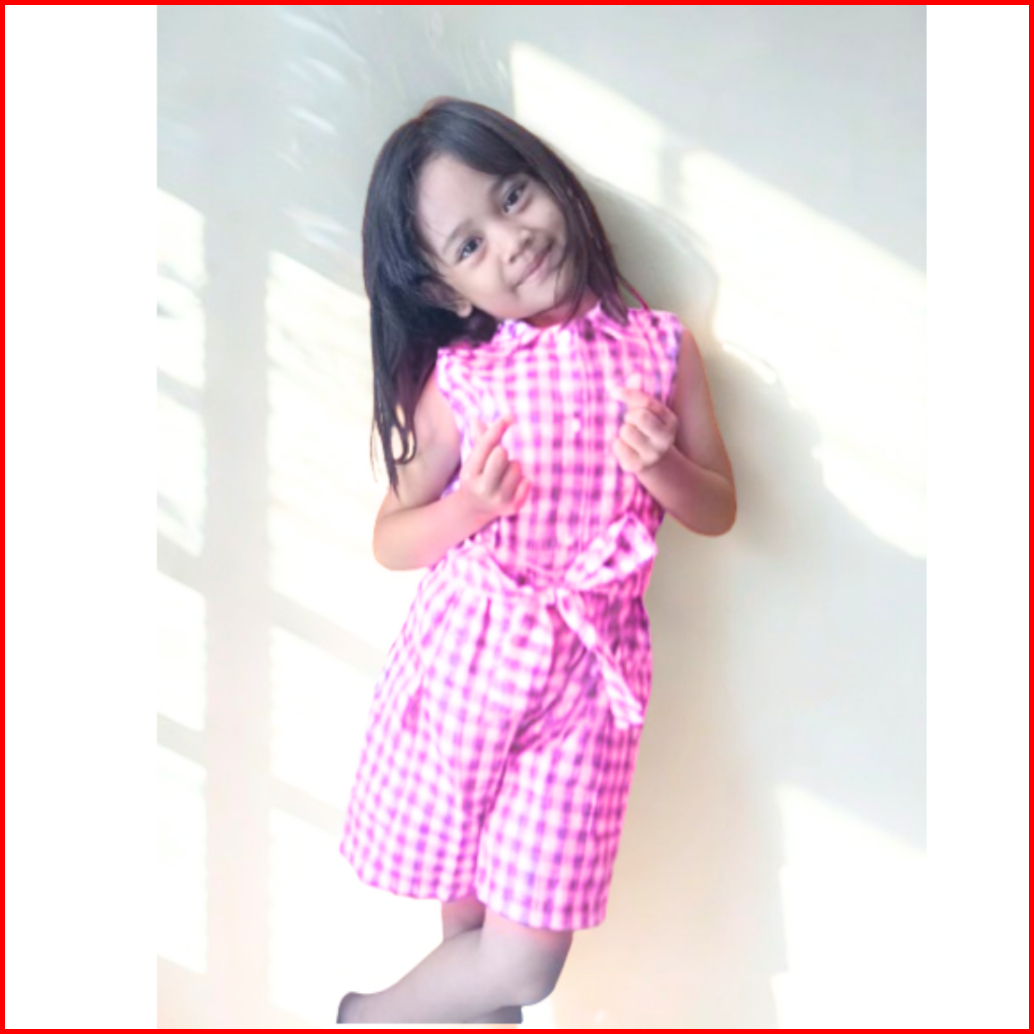 Renzcolection Jumpsuit Anak Perempuan Motif Kotak Kotak Dengan Saku Pinggir Untuk Umur 1-8 Tahun