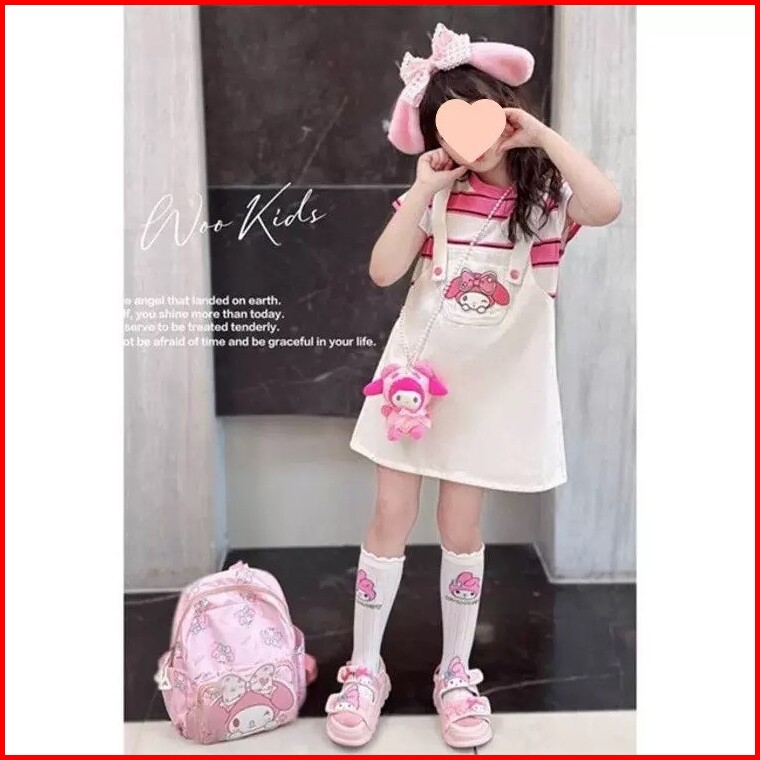 Kieskids Dress Kuromi Melody Baju Rok Terusan Garis Model Jumpsuit Kodok Pakaian Anak Perempuan Kk
