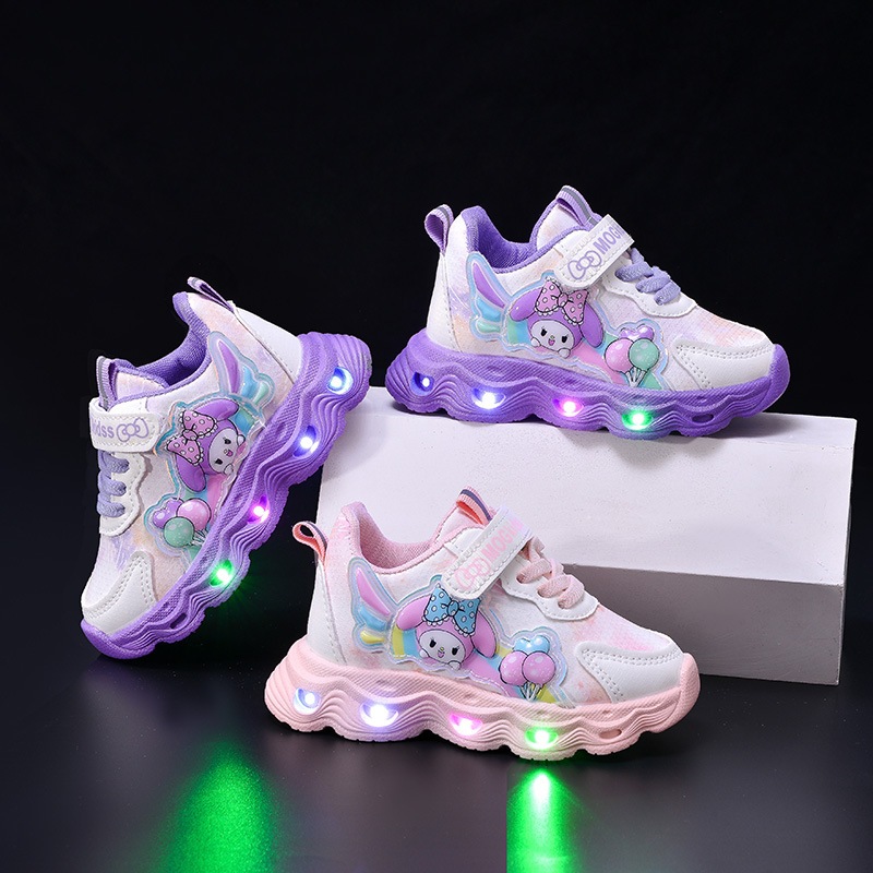 babyfit [size 21-30] sepatu sneakers lampu LED BALONMI girls fashion light shoes qt-1215