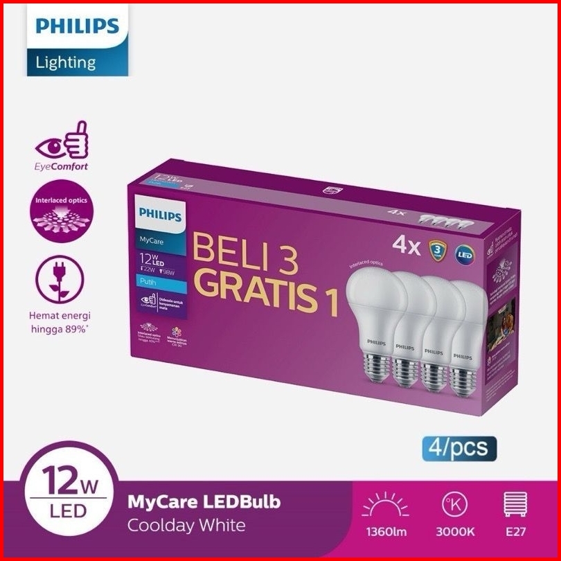 Promo.... Philips Lampu Multypack Mycare Led 12watt 4pcs 6500k Putih