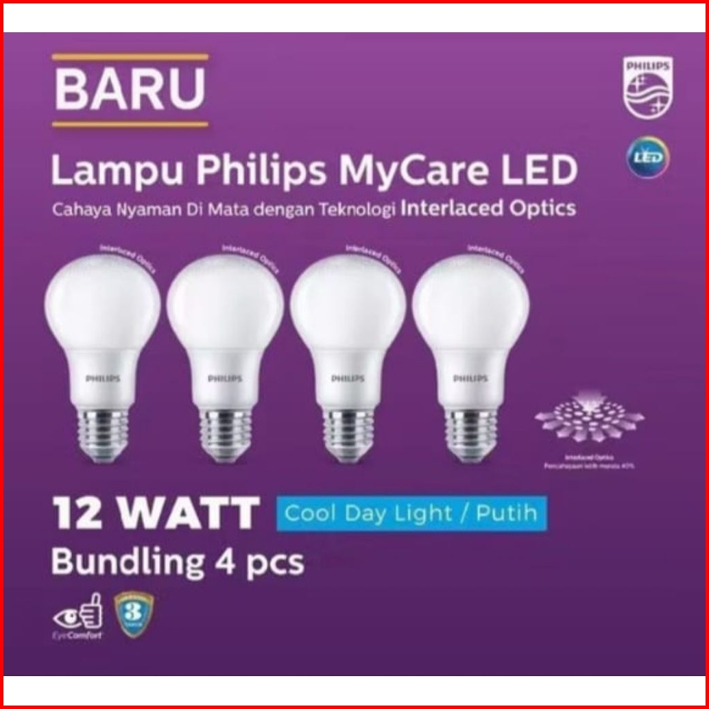 Terlaris Lampu Led Philips 3 Gratis 1 Paket 12w Watt Cahaya Terang Low Loss Rumah Jadi Terang
