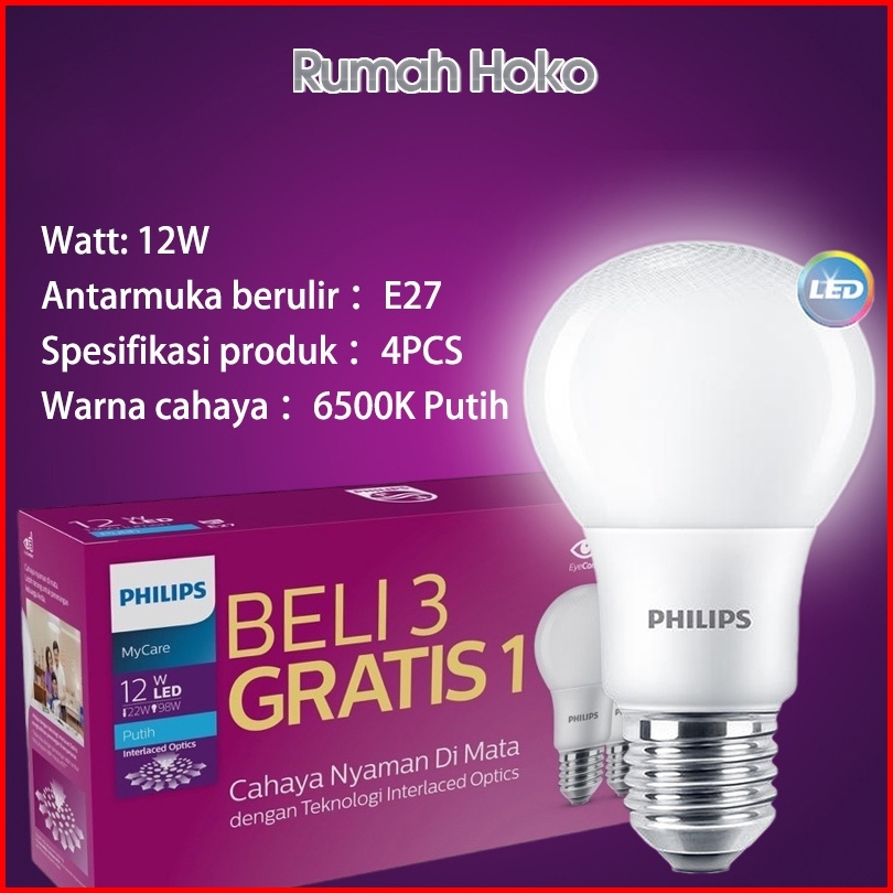 Rumah Hoko Philips Lampu Led 12w E27 6500k Putih Penghematan Energi Perlindungan Mata
